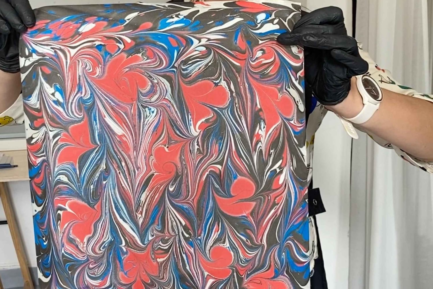 Durante il workshop conoscerai questa antica tecnica di stampa che veniva praticata in Giappone già 1000 anni fa. Da lì si è diffuso in Persia e Turchia e, grazie ai viaggiatori, ha raggiunto l'Europa. Le carte marmorizzate sono ancora usate per decorare documenti preziosi, copertine di album, risguardi e mobili. È una tecnica di pittura su una superficie galleggiante chiamata 'size', che viene preparata in precedenza mescolando acqua e polvere di carragenina. Metti un foglio di carta sopra e sollevalo per rivelare l'immagine impressa. Ogni foglio di carta marmorizzata è diverso dall'altro, per questo è un tipo di stampa così unico. Esplora la possibilità di creare nuovi modelli imprevedibili. Durante il laboratorio conoscerai gli strumenti tradizionali, i gesti che si applicano per creare diversi movimenti di pittura e come i diversi colori giocano tra loro. Potrai creare le tue stampe e portarle a casa con te. Dopo il workshop, mentre i fogli si asciugano, ti serviranno tè e caffè. Il laboratorio si svolge a Griffenfeldsgade 27, Nørrebro, all'interno della libreria d'artista chiamata 'BLADR'. Accettiamo piccoli gruppi di 2-3 persone o singoli. Durata: circa 2 ore. Tutti i materiali sono inclusiIncludes